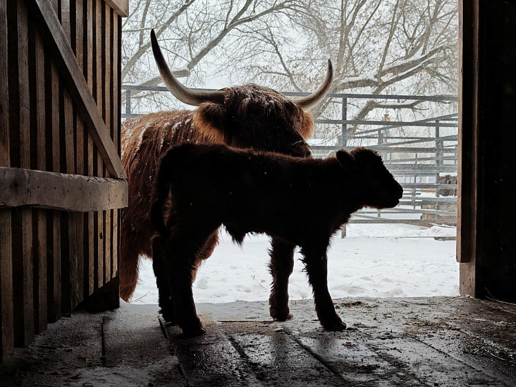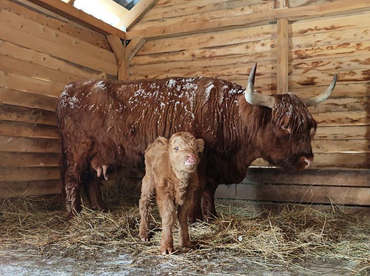 Коровы породы хайленд Трофим и Маруся во второй раз стали родителями в ночь с 6 на 7 ноября в барнаульском зоопарке. Предварительно у них родилась девочка. Точно пол установят во время планового осмотра.