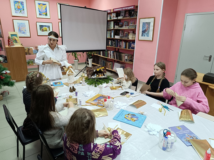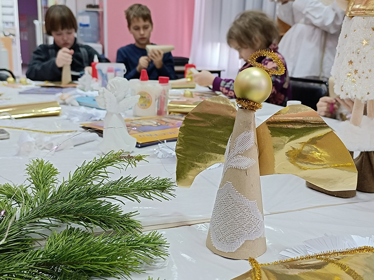 Чтобы проникнуться атмосферой Рождества, перед мастер-классом ребят в видеоформате познакомили с историей праздника, традициями Святок, угощениями на рождественский сочельник, способами нарядить рождественскую ель, книгами про Рождество. А в качестве подарка своим родным предложили своими руками сделать красивого ангелочка, который украсит квартиру.