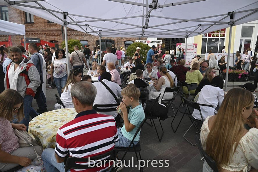 На площади Свободы во время празднования 295-летия Барнаула с утра работало 42 точки, где можно было купить еду и напитки. Среди них — блюда на огне и гриле, шашлык, плов, чебуреки, блины, хот-доги, сэндвичи, пицца и фритюрные закуски. Также продавали домашние лимонады, соки, морсы, выпечку, кондитерские изделия и десерты.
