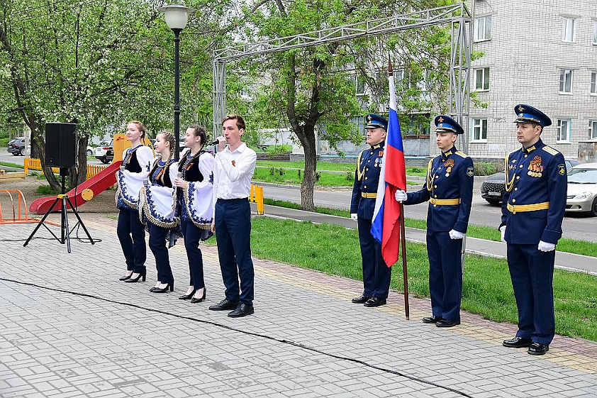 Праздничный концерт состоялся и во дворе дома на улице Георгия Исакова для Анны Неподкосовой и Валентины Холодковой. Вместе с тружениками тыла известные всем песни слушали и подпевали артистам родственники ветеранов, знакомые, соседи.