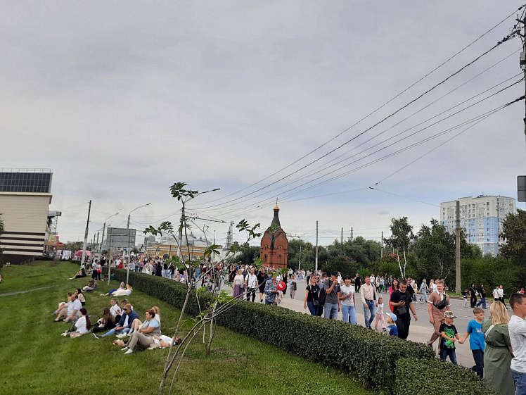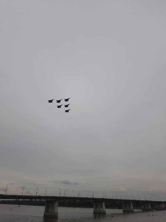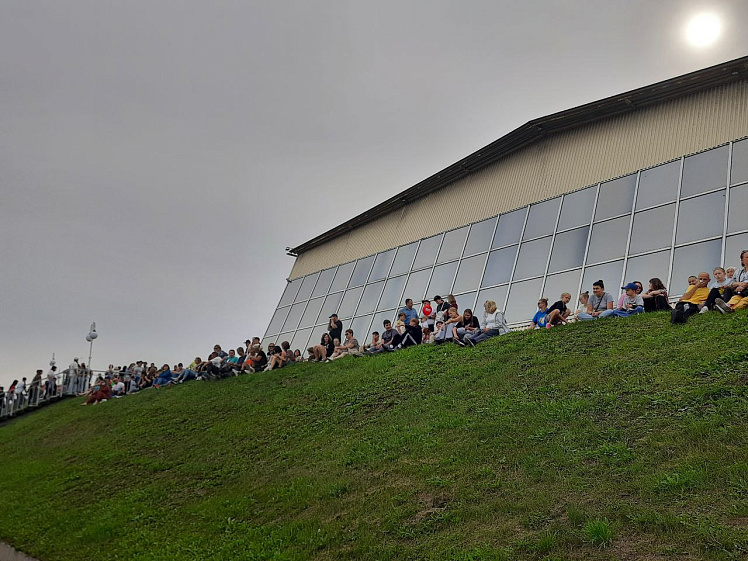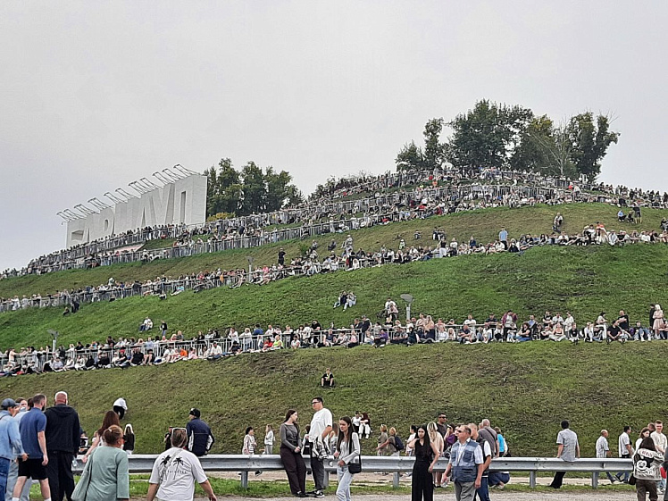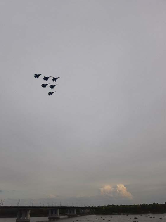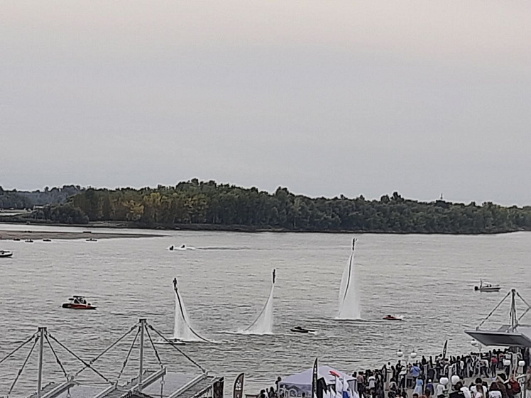 Людское море заполнило пространство проспекта Ленина, Нагорного парка и набережной. В ожидании виртуозных полётов перед жителями флайборд-шоу представили мастера из Екатеринбурга. Воздушные трюки над водой скрасили время для тысяч горожан. Но главными героями вечера стали «Русские Витязи».