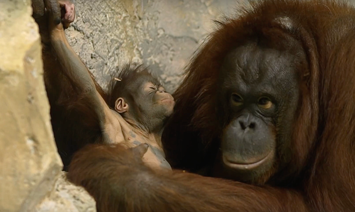 В Новосибирском зоопарке дочери орангутангов Бату и Мишель исполнилось три месяца. У этих приматов период взросления один из самых продолжительных в животном мире, и сейчас малышке интересно исследовать окружающую среду.