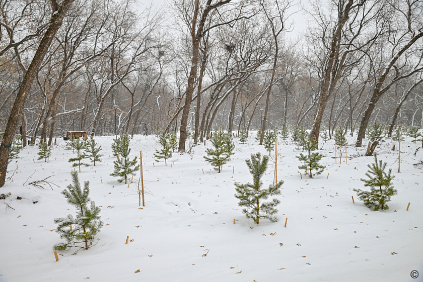 В парке появились новые деревья, включая лиственницы и ивы, которые ранее здесь не росли. Посадки проводятся по заранее разработанному дендроплану. Озеленение не ограничится текущим годом и будет продолжено в последующие годы. На следующих этапах планируется высадить ещё около тысячи деревьев.