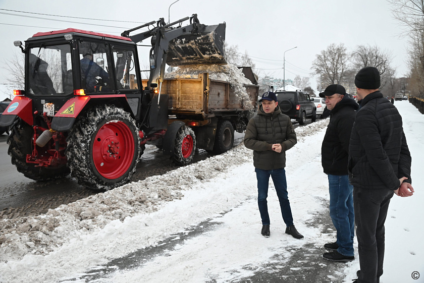 Заместитель главы администрации города по дорожному хозяйству и транспорту Андрей Курышин проверил ход работ по уборке снега.