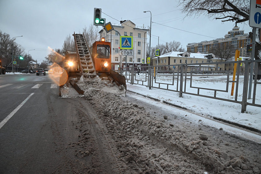 В ночь с 7 на 8 ноября дорожники начали убирать снег с городских улиц. Они вывозят его на подготовленные снежные отвалы.