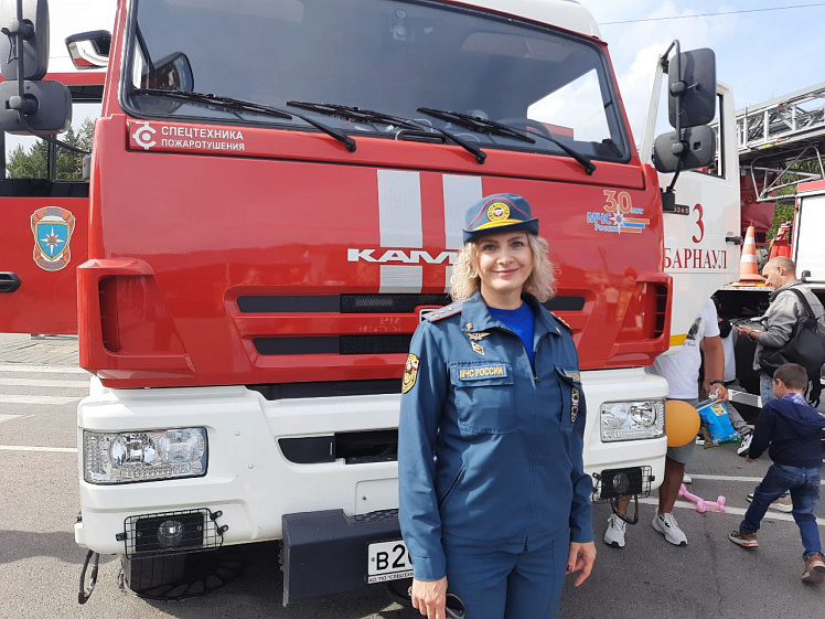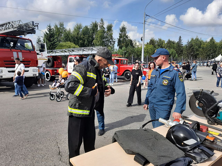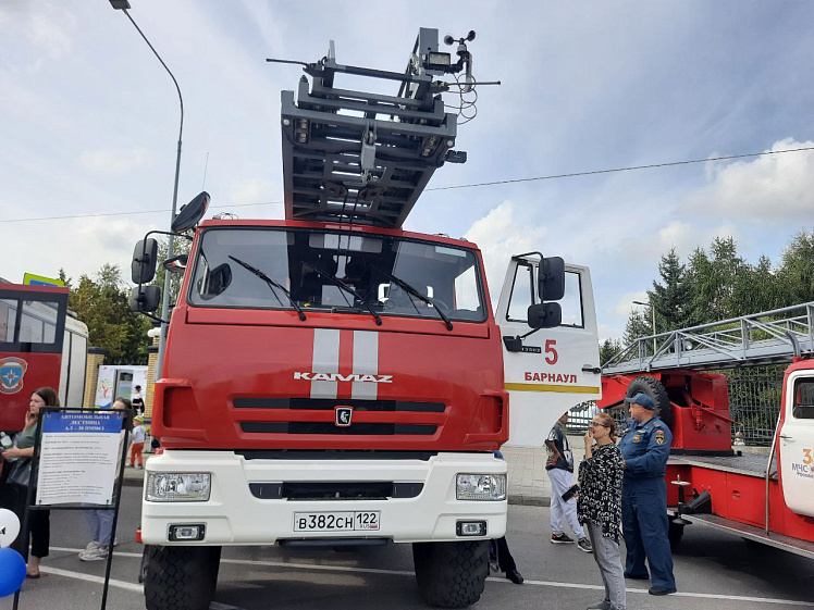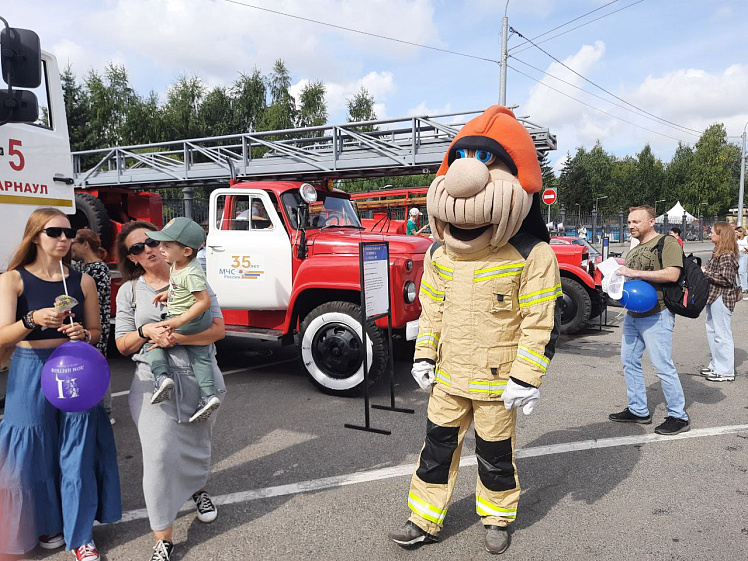 связей ГУ МЧС России по Алтайскому краю. Горожане могут примерить обмундирование и экипировку пожарного, сделать уникальное фото в салоне пожарного автомобиля.