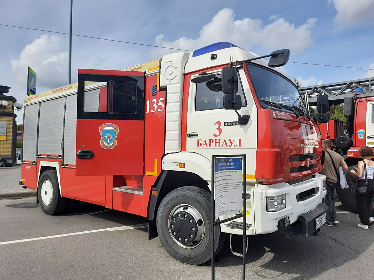 Заместитель начальника Центра противопожарной пропаганды и общественных связей ГУ МЧС России по Алтайскому краю Елена Тиньгаева отметила, что на выставке представлено шесть пожарных машин, из них — три образца современной техники и три ретро.