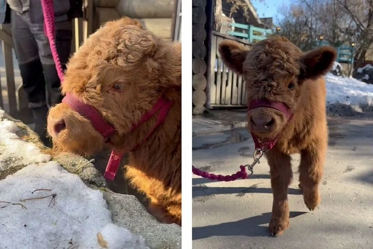 Для кормления и общения телёнка приводят к матери. Сотрудники используют розовый недоуздок с поводком. Во время прогулки малышка бежит рядом с человеком, часто отвлекаясь, чтобы изучить каждую деталь, отметили в пресс-службе зоопарка.