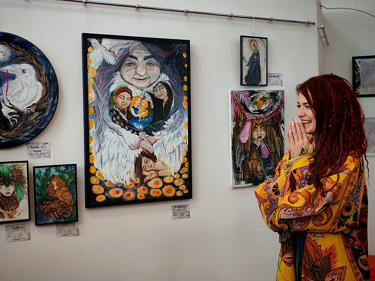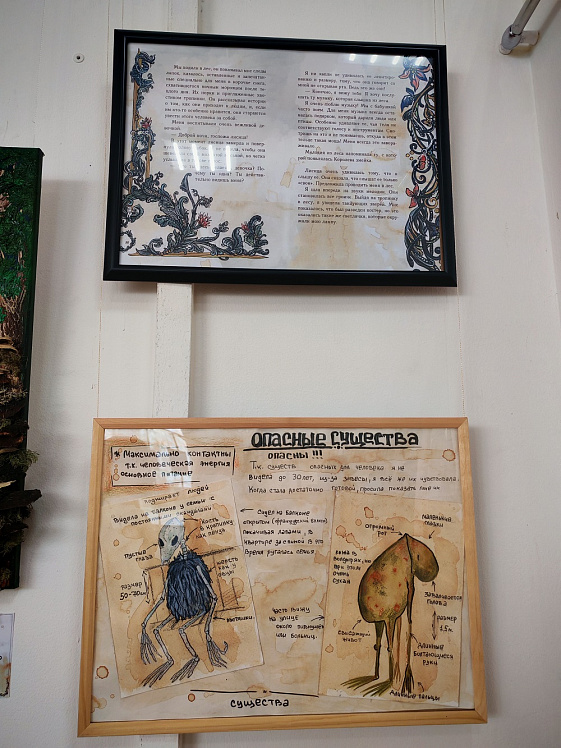 Галерея «Универсум» на некоторое время превратилась в настоящий бестиарий. На посетителей с полотен смотрят удивительные существа, кстати, многие из них знакомы каждому с детства из сказок — русалка, домовой, бабайка. Но есть и те, кто впервые предстанет перед посторонними глазами, например, дух с вулкана Камчатки. Все они персонажи будущей книги художницы Анны Гайдаровой.