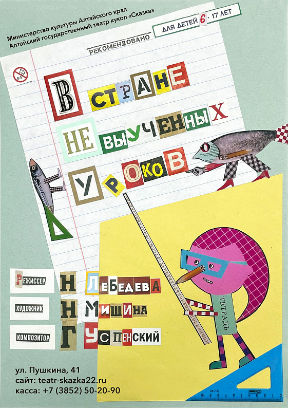 Первый премьерный показ сезона состоялся 1 сентября — спектакль «В стране невыученных уроков» (6+), по популярному произведению Лии Гераскиной в постановке московского режиссёра Натальи Лебедевой.
