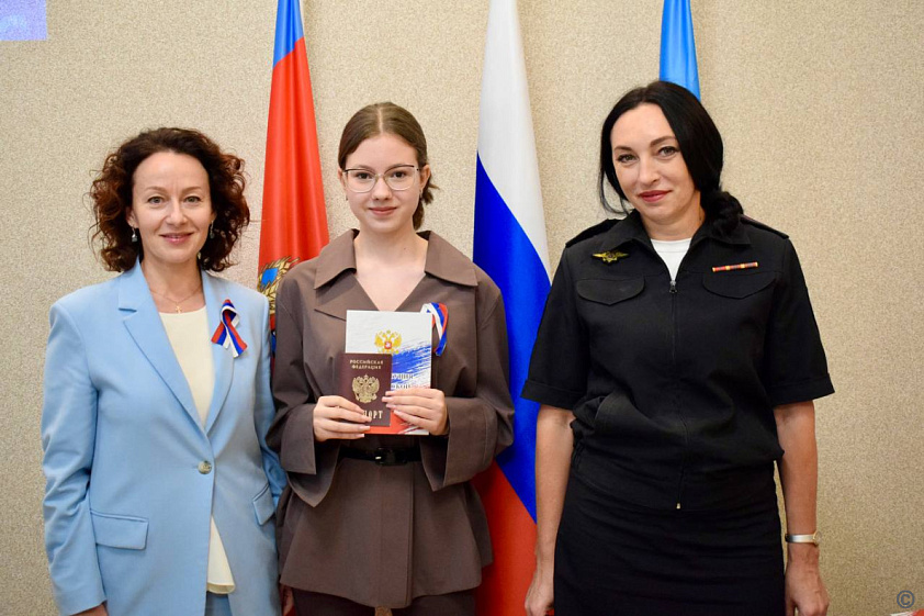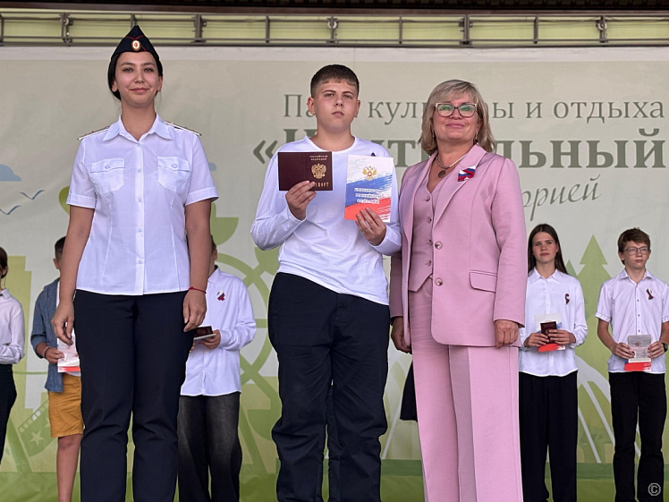 Юные граждане вместе с паспортом получили личный экземпляр Конституции России, обложку для документа и другие памятные подарки.