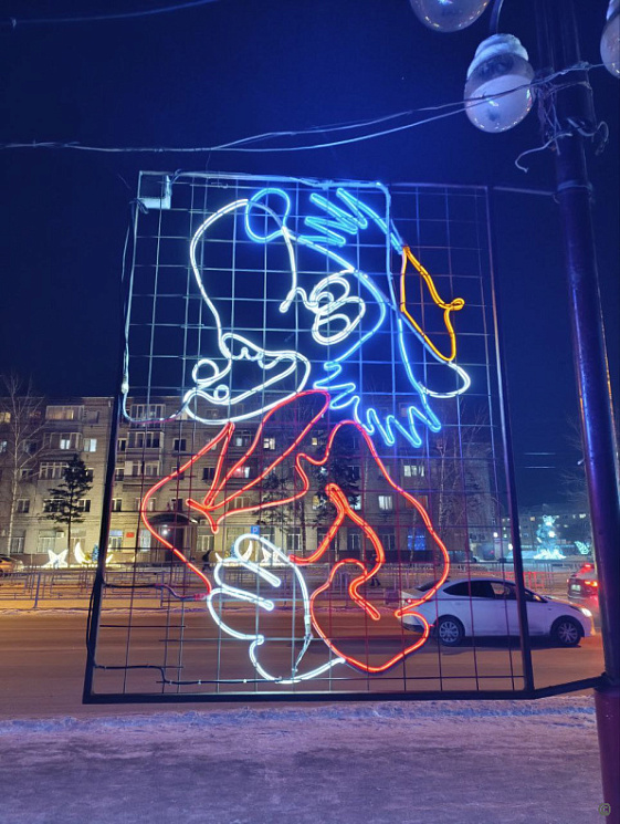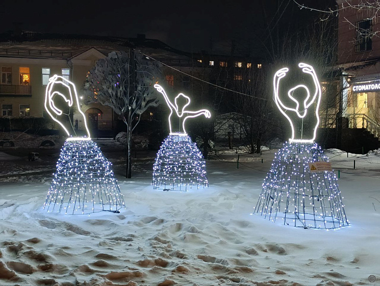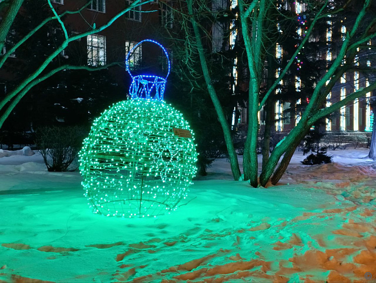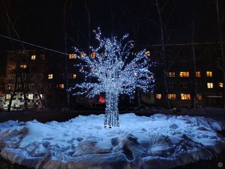 На пересечении улицы Молодёжной и проспекта Социалистического установили композицию «Снегири». На проспекте Красноармейском деревья украсили световыми кольцами, а на площади Советов появились декоративные элементы «Фонари» и «Свечи».