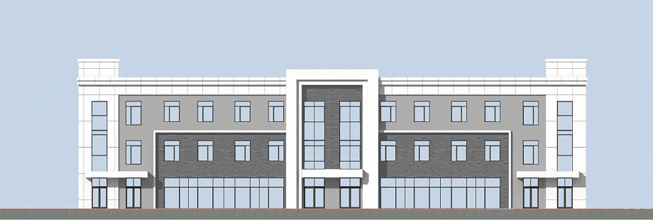Разработчиками на выбор предложено три цветовых решения – в серо-бело-синих цветах, бело-коричнево-красных и нейтрального оттенка –бело-серой гаммы с вкраплениями ярких красных акцентов. У здания будет акцентный элемент по центру фасада в виде буквы П, витражное остекление первого этажа и витражные окна на два верхних этажа по центру фасада и с двух сторон — как продолжение повышения объёма с двух сторон здания.