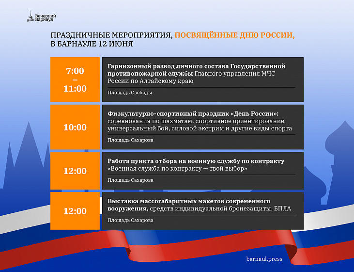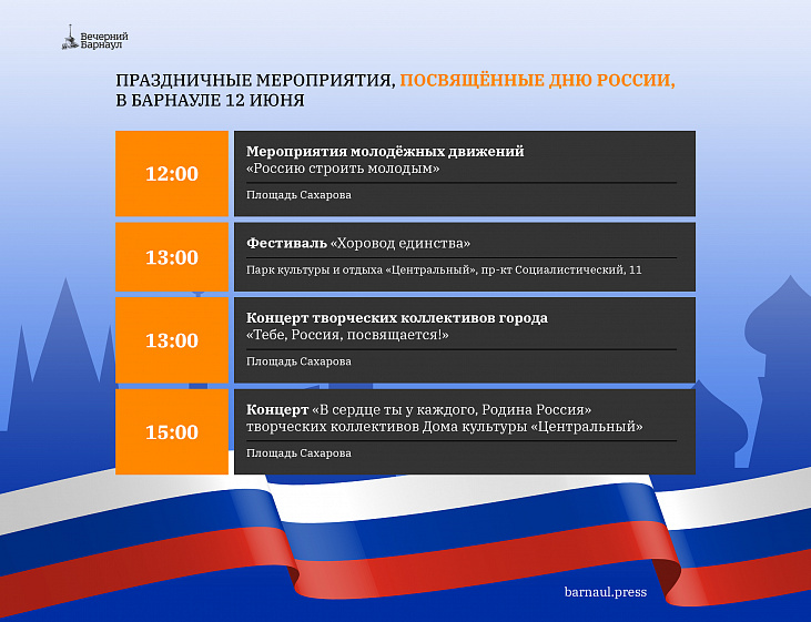 Какие праздничные программы ко Дню России состоятся в парках Барнаула, мы рассказывали ранее.