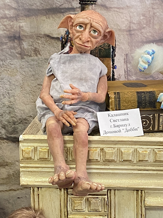 На выставку «Её величество кукла», которая работает в музее «Город» до 27 февраля, кроме домового Добби, Гарри Поттера и говорящей шляпы, великолепной Анжелики в исполнении французской актрисы Мишель Мерсье и «Золотого петушка» из произведения Александра Пушкина, Светлана Калашник представила две полноценные экспозиции. Работать в нескольких техниках сразу и создавать на небольшой площади полноценный сюжет мастерица научилась не сразу, но ведь и куклами она занимается всего пять лет.